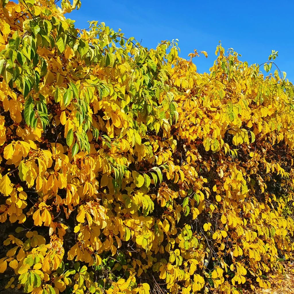 Le Celastrus orbiculatus Hercules est parfait pour habiller une tonnelle, une grande clôture, un pylône, une palissade ou un grand bâtiment. Si vous souhaitez l’associer à un arbre, choisissez en un sujet âgé et de grande taille qui pourra supporter sa concurrence. Très résistant au froid, cet arbuste est peu difficile en termes de sol, mais il a besoin d’une certaine humidité pour s’épanouir. Son feuillage apporte une touche luxuriante à n’importe quel décor et un charme fou à l’arrière-saison. Dans un grand jardin, exotique, il accompagnera la végétation magnifique de l’Aristoloche. En sol humide, il pourra grimper sur un Nyssa sylvatica de belle taille par exemple, l’alliance de leurs couleurs d’automne sera magnifique. Son association avec une vigoureuse vigne vierge telle que Parthenocissus quinquefolia est par ailleurs somptueuse !