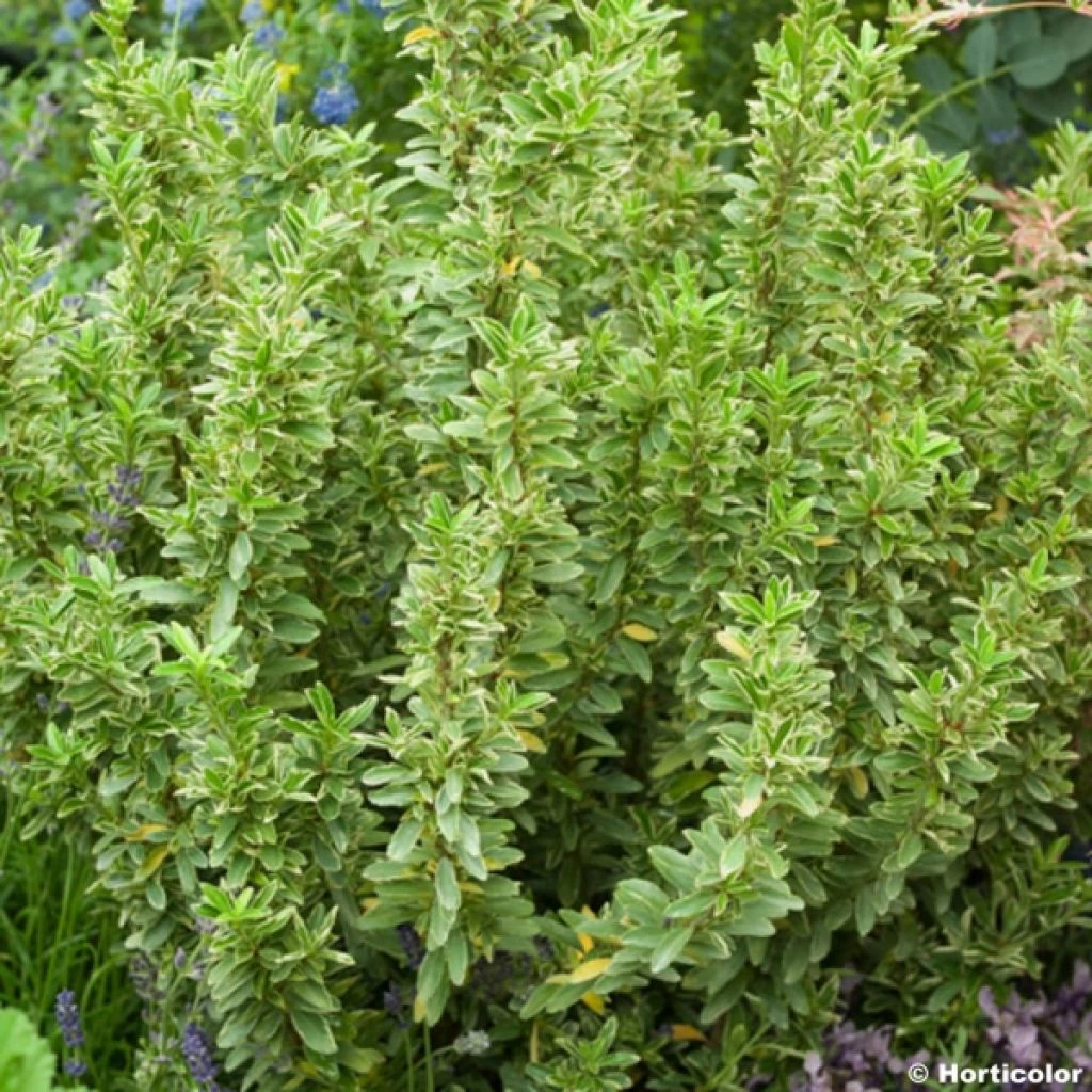 L’Euonymus japonicus Microphyllus Albovariegatus est une ravissante variété de fusain du Japon, de petite taille mais bien buissonnante, dont le menu feuillage luisant, vert marginé de blanc, ressemble à celui du buis panaché. Lumineux et décoratif tout au long de l’année, cet arbuste permet de composer un décor élégant, dans une petite haie ou dans un bac sur la terrasse. Excellente alternative au buis dans les zones mi-ombragées du jardin, supportant bien la taille, cet arbuste préfère toutefois la mi-ombre et les sols frais, y compris à tendance calcaire.Â