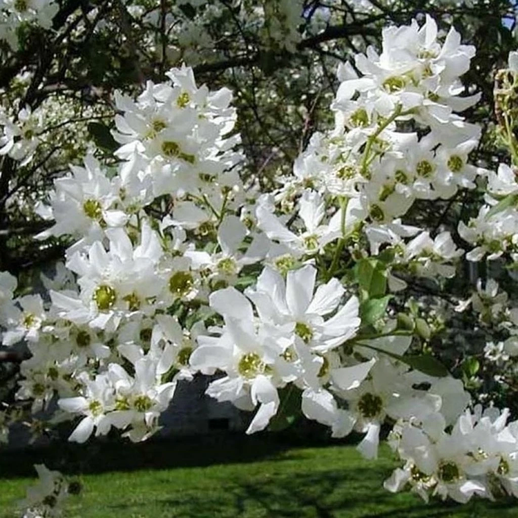 L’Exochorda serratifolia Snow White appartient à la famille des rosacées, et son ancêtre est originaire de Corée et de Mandchourie. La sélection ‘Snow White’ est un arbuste au port buissonnant joliment arrondi, assez dense, soutenu par des branches légèrement arquées. Sa croissance est moyennement rapide, il atteindra en moyenne 2,50 m en tous sens, parfois un peu plus dans les terres fertiles et bien fraîches.  Sa floraison, assez brève mais intense, a lieu de fin mars (dans le sud) à fin avril-début mai. Ses jeunes rameaux se couvrent d’un chapelet de boutons floraux parfaitement ronds, d’un blanc nacré, qui lui ont valu son surnom d’arbre aux perles. Ces boutons, assemblés en grappes de 5 à 10 unités, éclosent en fleurs simples à 5 pétales, de 3-4 cm de diamètre, de couleur blanc pur à cÅ“ur jaune pâle. Elles sont si nombreuses qu’elle recouvrent presque entièrement la végétation. Ses feuilles, caduques, naissent au printemps et prennent une couleur jaune avant de tomber en hiver. De de couleur vert clair à moyen, elles mesurent de 4 à 5 cm de long et sont de forme ovale, allongées, pointues et dentées à leur extrémité. Cet arbuste est extrêmement rustique (-20°C) et il n’a pas d’ennemis ni de maladies dans nos jardins.