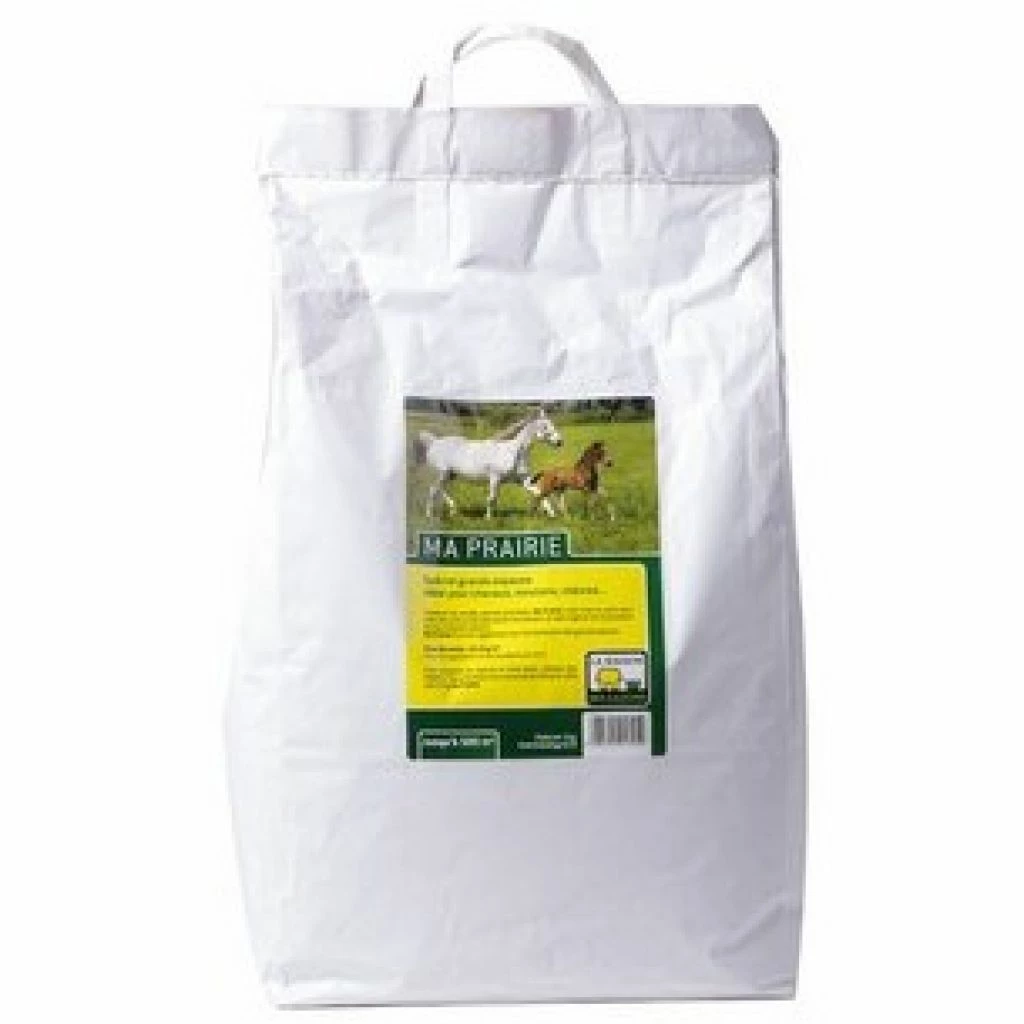Le Gazon Ma Prairie est un mélange de graminées rustiques et vigoureuses qui permet l’engazonnement de grands espaces et la création de pâtures destinées aux chevaux, chèvres et autres moutons… Cette composition installe un tapis bien vert qui se développe tout au long des saisons. Moins exigeante en eau et en entretien qu’une pelouse classique, cette prairie peut aussi être utilisée pour la création d’un faux semis*. Les graines se sèment de préférence en mars-avril à la volée, au soleil, dans un sol bien préparé et ameubli. Un sac de 5 kg permet de couvrir jusqu’à 500 m².