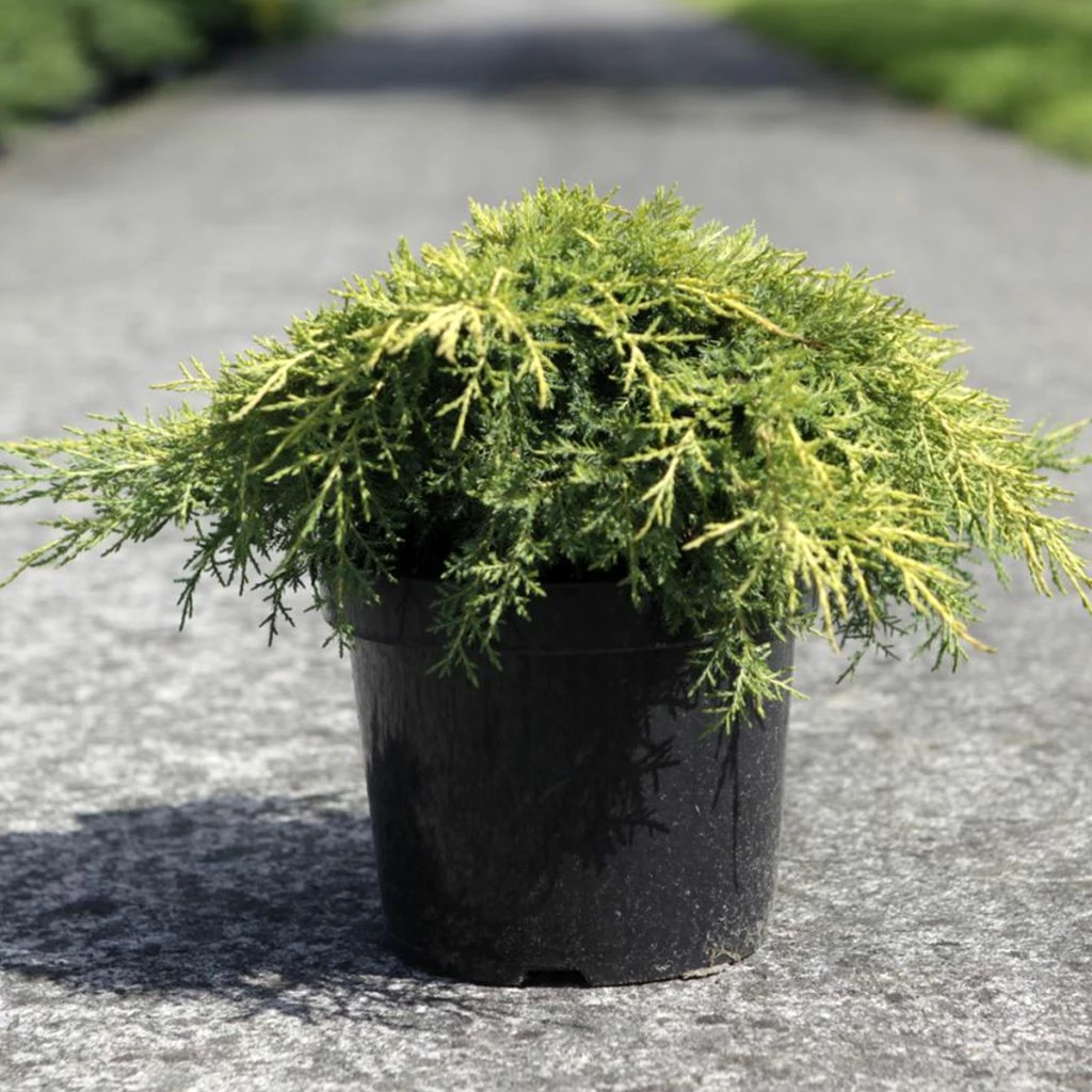 Le Juniperus x media Gold Star est un genévrier hybride de taille limitée, très graphique, intéressant pour son feuillage d’un beau jaune tout au long de l’année, ainsi que pour son port bas, en coussin large. À ces qualités ornementales s’ajoutent une excellente résistance au froid et une grande facilité de culture dans tout type de sol drainé. Supportant très bien le sec, ce conifère est ainsi parfait pour animer une rocaille, décorer un talus, ou bien structurer un massif dans un petit jardin.Â