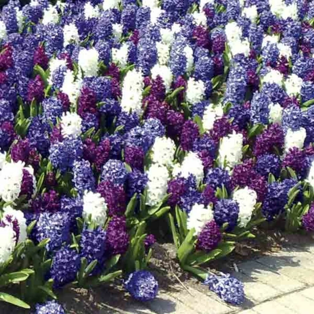 L’harmonie océan est une collection de 20 jacinthes aux couleurs bleu, blanc et lilas foncé.