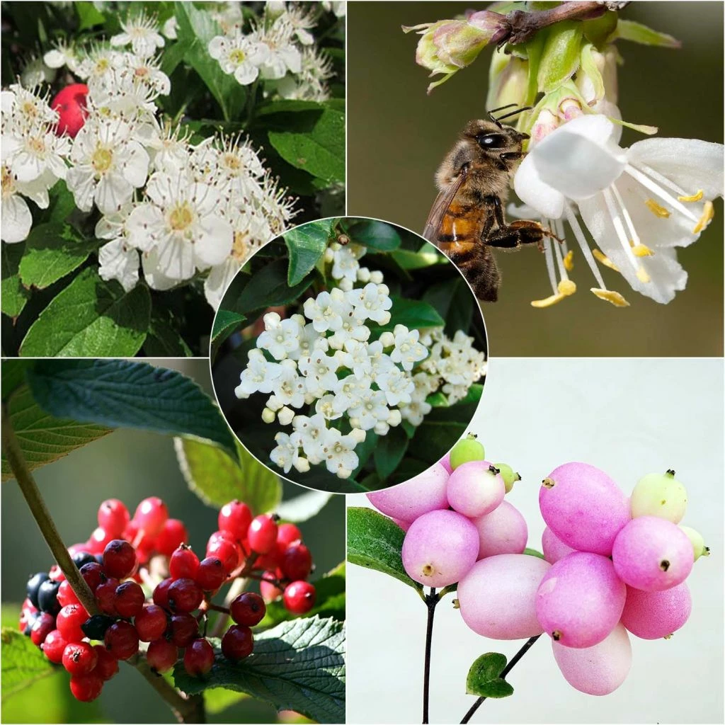 - 1 Chèvrefeuille d’hiver - Lonicera fragrantissima. Cette belle espèce arbustive forme un gros buisson de 2.50 m de hauteur par 2.75 m d’envergure. Il est apprécié pour sa floraison hivernale blanche superbement parfumée, qui fera le bonheur des premières abeilles et des bourdons. A son apogée en février, elle est bien visible sur les rameaux souvent dénudés à cette époque de l’année. Vigoureux, économe en eau, rustique et peu exigeant.