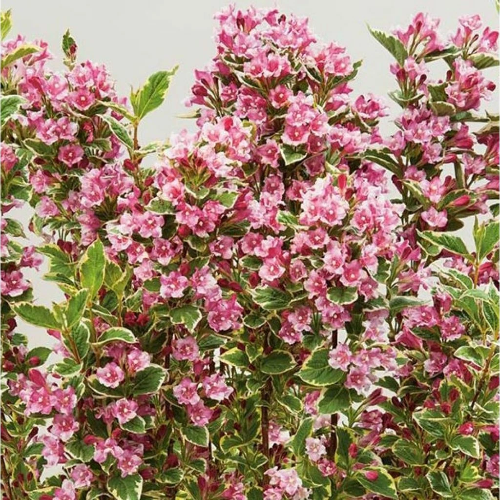 Le Weigela ‘Kosteriana Variegata’ est un arbuste remarquable par son port érigé et compact, au feuillage caduc vert foncé marginé de blanc ivoire, émaillé de fleurs en trompettes rose tendre de juillet à août. On installera cet arbuste estival facile d’entretien, dans un massif champêtre ou romantique, une haie fleurie, ou même dans un grand pot sur la terrasse. Il apportera une douce note florale au cÅ“ur de l’été.